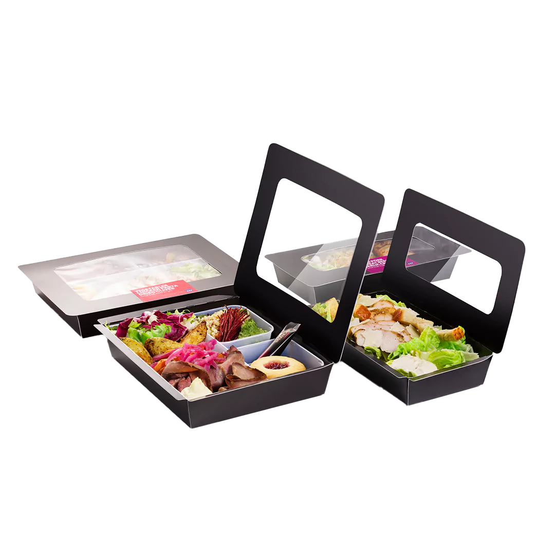 - Compartmentalised Boxes: Practical and attractive, keep different food items separated for assortments, tasting menus, or family sharing platters.