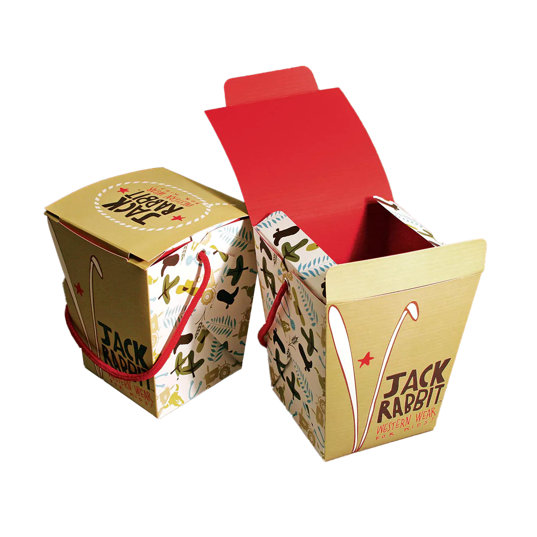 - Handle Boxes with Custom Printed Packaging Sleeves: Convenient and stylish, these boxes come with built-in handles for easy carrying, making them ideal for takeaway meals, snacks, or catering services.