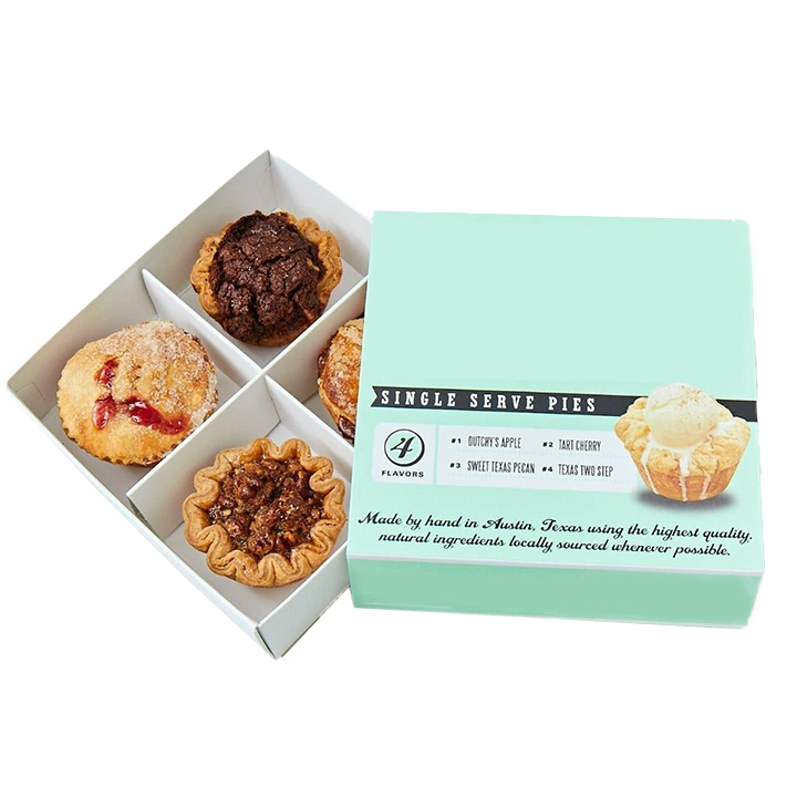 Your mini pies will gain a lovely presentation through small pie boxes available from The Product Boxes. These minimally sized boxes protect small items of pastry food like pies, quiches, tarts and dessert samplers for retail sales as well as takeaway service. Crafted from durable cardboard or kraft materials, our custom pie boxes securely maintain a fresh attractive presentation of delicate desserts. Professional appearance and better customer experience is provided by these from bakeries to home bakers and cafés and catering services. Small product box sizing options are also available at TPB UK.